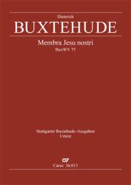 For Passion in 1680 Dieterich Buxtehude composed his largest work in the style of an oratorio, the cantata cycle Membra Jesu nostri, and he dedicated it to his friend, the Swedish Court Music Director, Gustav Düben. In each of the seven separate cantatas which, in principle, follow the scheme “instrumental introduction – choral movement with biblical texts – vocal soli (aria) with a sacred text from the Middle Ages – repetition of the choral movement,” the feet, knees, hands, side, chest, heart and face of the crucified Christ are interpreted allegorically. The original scoring for strings in No. VI ("Ad Cor") consists of a consort of five gambas. If this group of instruments is not available, then violins I/II can be substituted for gamba I/II and the gamba V parts can be played by the violone (the music for these substitute parts is contained in each respective parts), so that in this case only two gambas (III, IV) are needed. For such a performance only two copies of the Gamba performance score (Carus 36.013/16) are required.