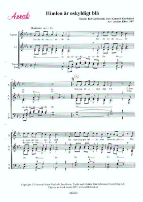 Bröderna Gärdestads fina ballad i ett femstämmigt arr lämpligt för vokalgrupp eller kör. Ett väldigt omtyckt arrangemang.