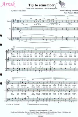 Övrig information Try to remember. SATB + bariton/tenorsolist. Svårighetsgrad 3 (medelsvår). AK080.
