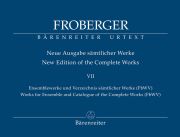 Volume VII now brings the complete edition to a close. It contains the two previously unpublished motets “Alleluja absorta est mors” (FbWV 701) and “Apparuerunt Apostolis” (FbWV 702), both for soprano, tenor, bass, two violins and continuo, as well as the “Capriccio in C” (FbWV 706) for four voices or four instruments. The appendix provides a catalogue of all Froberger works known to date (FbWV), including, as applicable, the incipit of each work and an entry on its instrumentation, date of composition, editions, and sources along with special comments. Another heading directs readers to the most important references in the secondary literature.