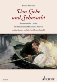 For the present collection, Pascal Martiné therefore used the artistic trick of arrangement based on Mendelssohn's Gesänge für zwei Frauenstimmen und Klavier to which he added a third female voice. Martiné conceived the added part in such a way that he took the romantic voice leading into account and logically extended Mendelssohn's respective compositional technique. He maintained the original piano accompaniment which now contributes to the song-like character of these choral arrangements.