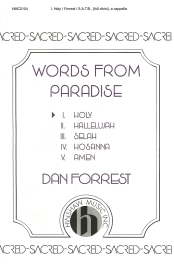 The five a cappella movements forming words from paradise by composer Dan Forrest each set one word from Scripture. The five pieces for a symmetrical arch, with selah as the keystone. Each piece represents a different aspect of eternal life in heaven. The pieces are exceptional as a group but are equally successful standing alone.